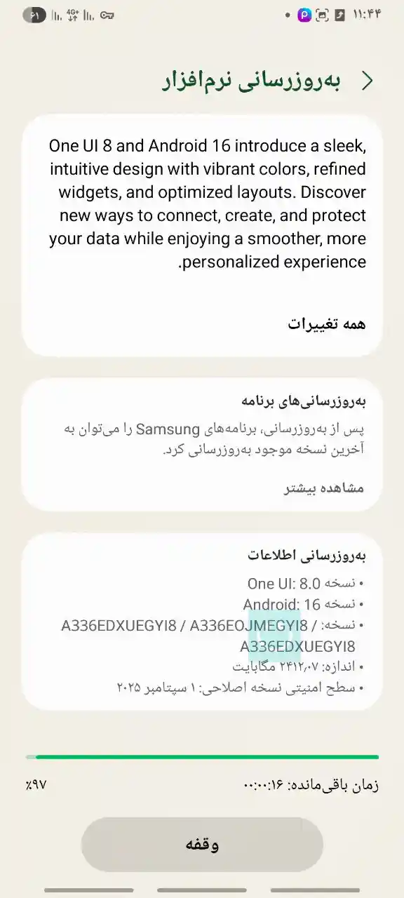 اسکرین شات آپدیت One UI 8 گلکسی A33 در ایران – ترنجی