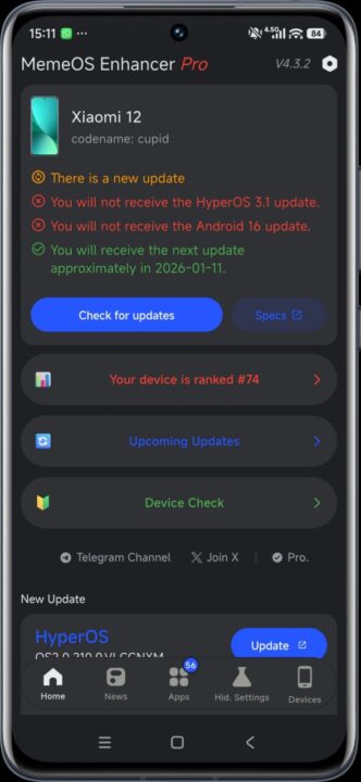 کاربران شیائومی اکنون میتوانند بهراحتی از طریق اپلیکیشن MemeOS Enhancer بررسی کنند که آیا دستگاهشان برای دریافت بهروزرسانی HyperOS 3.1 واجد شرایط است یا خیر. این اپلیکیشن از فروشگاه گوگل پلی قابل دانلود است و پس از اجرا، گزینهای در صفحه اصلی نمایش داده میشود که وضعیت دریافت این نسخه را برای دستگاه مشخص میکند.