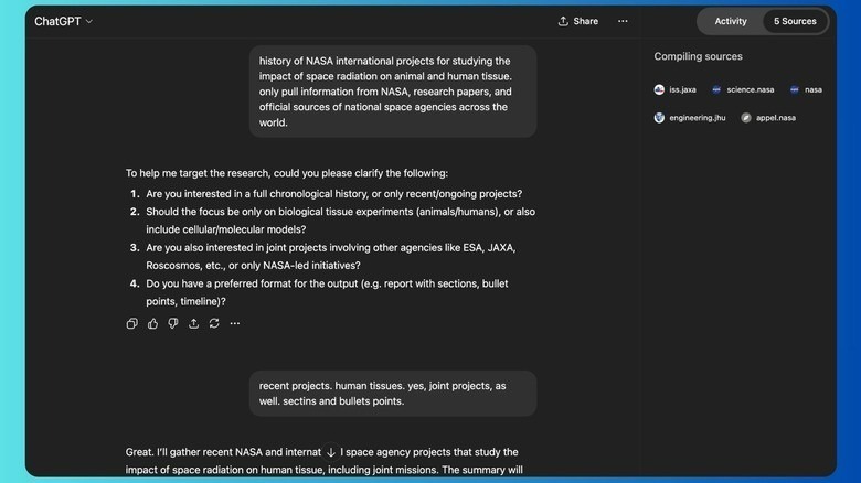 قابلیت Deep Research که حتی برای کاربران رایگان نیز در دسترس است، به ChatGPT امکان میدهد تا دهها سند، صفحه وب و مقالات تحقیقاتی را به طور همزمان بررسی کرده و یک گزارش جامع با تمام حقایق و منابع مهم تولید کند. این ویژگی، جستجوی دانش تکراری را بسیار ساده میکند. به عنوان مثال، در یک پژوهش حقوقی پیچیده در مورد مسئولیتپذیری خودروهای خودران در حوادث، Deep Research توانست در کمتر از ۱۰ دقیقه، گزارشی فرمتبندیشده با استناد به رسانههای ملی، قوانین محلی و اظهارنظرهای قانونگذاران تهیه کند و در زمانبندی نویسنده مقاله، نادیم ساروار، چندین ساعت صرفهجویی کند.