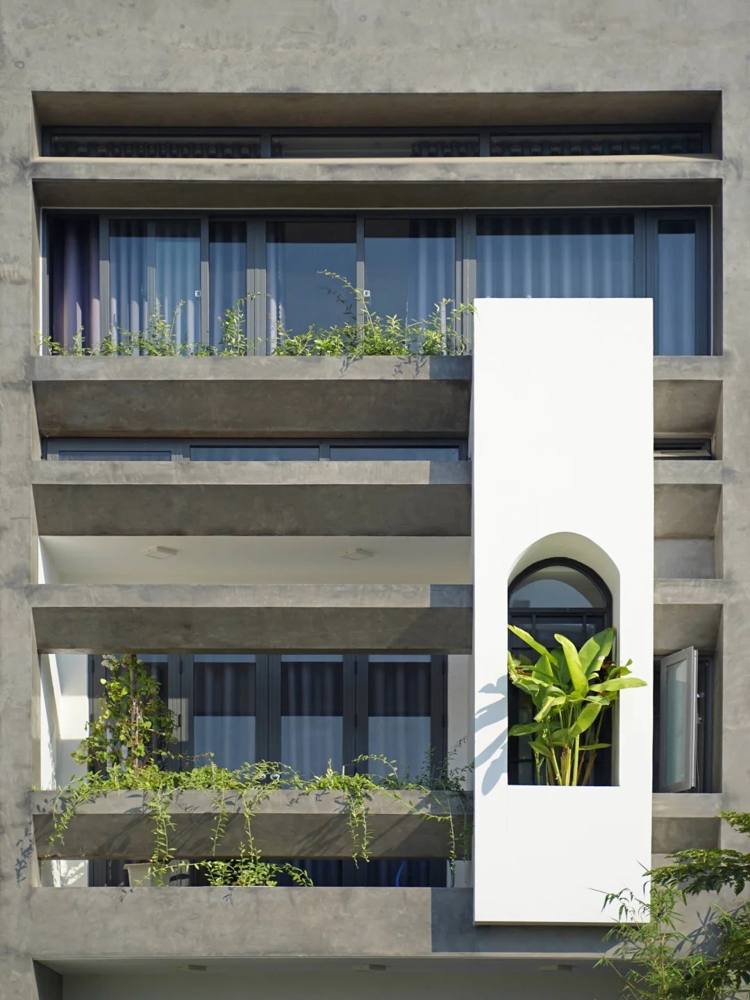 این اقامتگاه با سبکی مینیمالیستی و کاربردی، از مصالح خام و محلی استفاده میکند تا زیباییشناسی خنک و آرامشبخشی را به ارمغان بیاورد. توزیع داخلی فضاها، کاربریها را از هم جدا میکند: طبقات پایینتر (اول و دوم) به فضاهای نشیمن (پذیرایی، آشپزخانه، غذاخوری و اتاق خوابها) اختصاص یافته و طبقه فوقانی (سوم) شامل بخشهای کاری، تلویزیون و کتابخانه است. در طبقه اول، فضای آرامشبخش، که به شکل یک حیاط داخلی کوچک با یک درخت زیر فضای خالی مرکزی ایجاد شده، به عنوان یک پناهگاه سایهدار و هماهنگ برجسته است.
