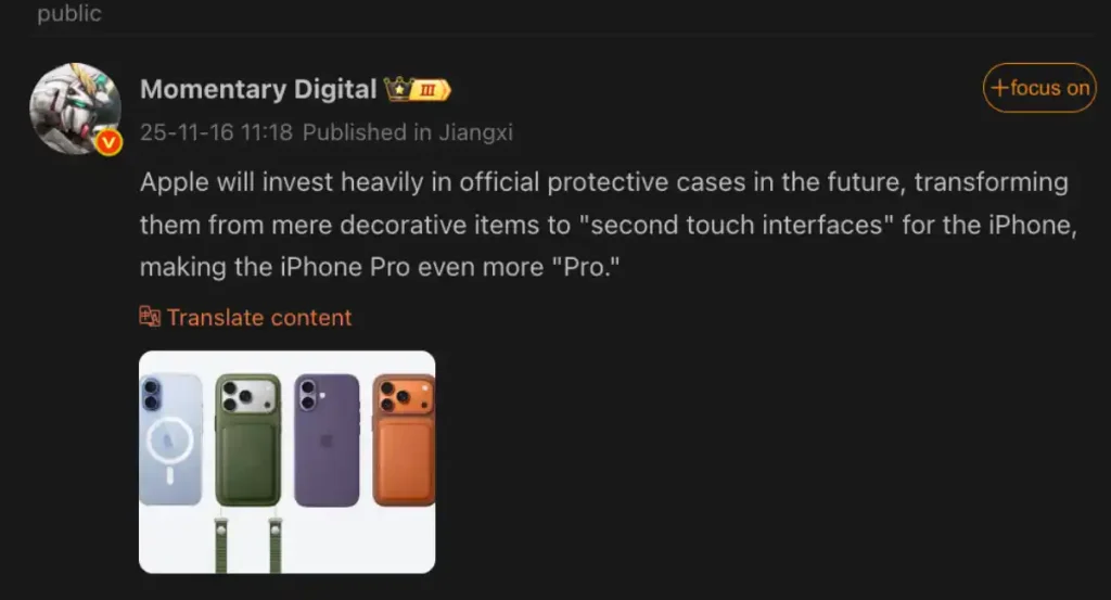 در حال حاضر، کاربران گوشی‌های هوشمند برای تعامل با دستگاه خود به نمایشگر و دکمه‌های کناری محدود هستند. با این حال، یک افشاگر در شبکه اجتماعی چینی Weibo با نام کاربری Instant Digital ادعا کرده است که اپل قصد دارد با ساخت قاب‌های جدید، این تجربه را متحول کند. این قاب‌ها فراتر از محافظت صرف عمل کرده و به «رابط‌های لمسی دوم» برای آیفون تبدیل خواهند شد.