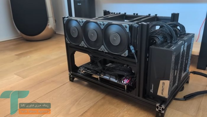 به گزارش بخش سخت افزار رسانه اخبار تکنولوژی تکنا، او در ویدیوی جدید خود توضیح میدهد که چگونه از تکنیک انشعاب PCIe برای ساخت یک مرکز داده کوچک با ۱۰ پردازنده گرافیکی استفاده کرده است. این مجموعه شامل هشت پردازنده گرافیکی سری Ada انویدیا و دو کارت RTX 4090 با خنککننده دمنده است. این کارتهای ۴۰۹۰ شبیه به مدلهای اصلاحشدهای هستند که به طور گسترده در چین استفاده میشوند.
