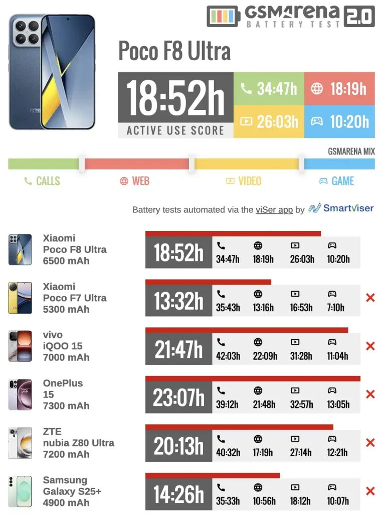 تست باتری پوکو F8 Ultra و مقایسه با رقبا