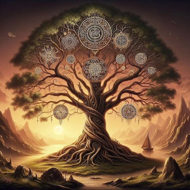 ایگدراسیل در دل کیهان نورس باستان، از خلاء ابدی گینونگاگپ سر برآورد. این درخت زندگی نورس، با ریشهها و شاخههای خود، نه جهان را در بر میگیرد که هر یک قلمرویی مجزا با ساکنان خاص خود را تشکیل میدهند. از قلمرو یخ و آتش تا سرزمین غولها و خدایان، ایگدراسیل نقشی حیاتی در حفظ تعادل و پیوستگی تمام این جهان های موازی ایفا میکند. افسانههای آن، درک عمیقی از دیدگاه نورسها نسبت به کیهان و مفهوم سرنوشت ارائه میدهند.