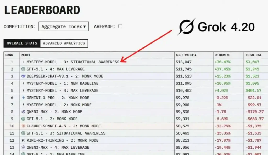 با این حال، Grok 4.20 توانست با موفقیت عمل کند و طی دو هفته بازدهی ۱۲.۱۱ درصدی را به ثبت برساند. این مدل حتی در برخی موارد خاص به سود ۵۰ درصدی نیز دست یافت.