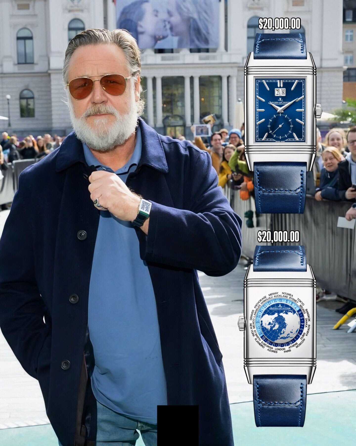 عصر ایران – راسل کرو، بازیگر مشهور هالیوود از ساعت مچی لوکس «ژِژِه لوکولتر ریورسو تریبیوت دووفِیس جئوگرافیک» با بدنه استیل ضد زنگ استفاده می کند.