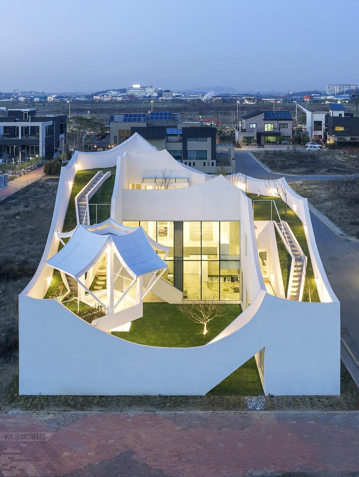 در طراحی این بنا که مربوط به سال 2017 می شود و مساحت زمین آن نیز 195 متر مربع است، ویژگیهای فرمی معماری سنتی کره با فعالیت روزانه مالک آن (پرواز) پیوند خورده است تا هویتی فرهنگی و نمادین ایجاد شود. سقفهای پویای این خانه که بر فراز حیاط مرکزی به پرواز درآمدهاند، استعارهای از حرکت هواپیما در آسمان هستند.