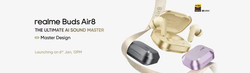 پوستر رسمی ویژگیها و رنگبندی متنوع ریلمی Buds Air 8