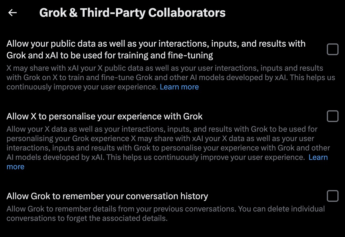 با انتشار قابلیت، نخستین پرسشی که برای بسیاری از کاربران مطرح شده، چگونگی غیرفعال کردن آن است. واقعیت ناخوشایند این است که در زمان نگارش این مطلب، هیچ راهکار مستقیمی برای خروج از این وضعیت وجود ندارد. مسیر بدیهی تنظیمات شامل Settings، سپس Privacy و در نهایت Grok & Third-Party Collaborators، گزینه مشخصی برای غیرقابلویرایش کردن تصاویر ارائه نمیدهد. حتی اگر کاربر تمامی گزینههای موجود در این بخش را غیرفعال کند، تصاویر منتشرشده او همچنان در برابر ویرایش هوش مصنوعی مصون نخواهند بود.