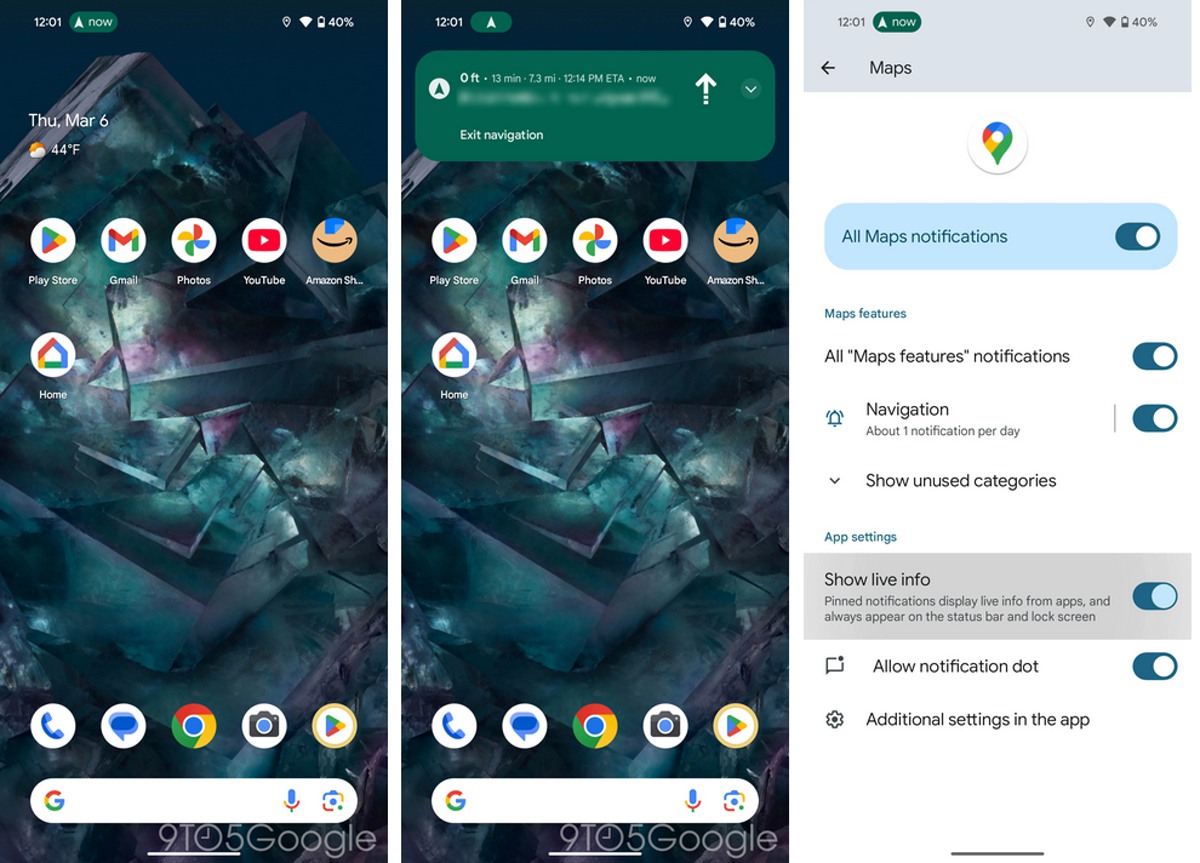 یکی از ویژگیهای کلیدی نسخه آینده اندروید ۱۶، قابلیت Live Updates است. این ویژگی به اعلانهای پیشرفتمحور اجازه میدهد تا بهطور برجسته در نوار وضعیت (status bar)، پنل اعلانات (notifications panel)، صفحه قفل و نمایشگر همیشه روشن (always-on display) نمایش داده شوند. این ویژگی برای اولین بار دو ماه پیش توسط گوگل معرفی شد، اما در آن زمان آماده تست توسط توسعهدهندگان نبود. با انتشار آخرین نسخه بتای اندروید ۱۶، Live Updates بهطور جزئی فعال شده و نقشه گوگل (Google Maps) از اولین برنامههایی است که از این ویژگی پشتیبانی میکند.