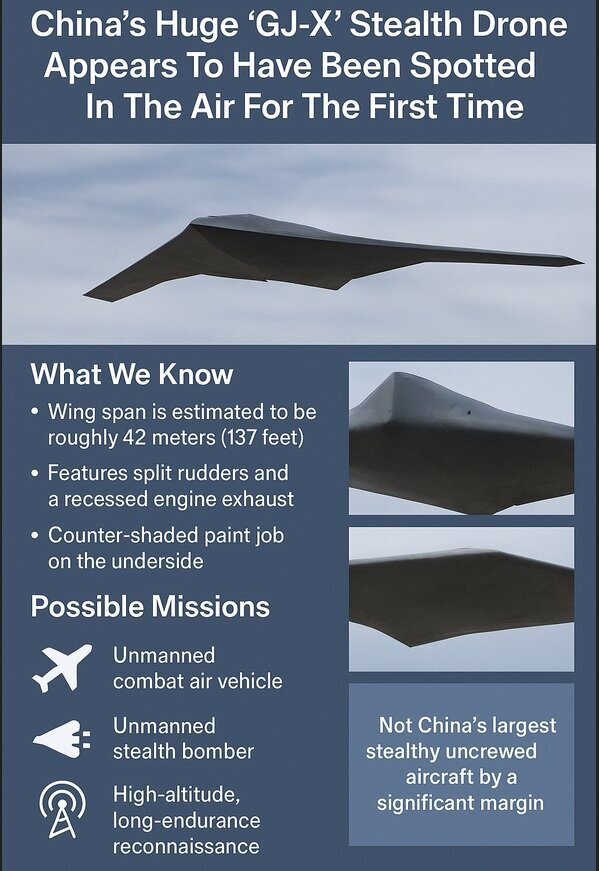 البته کارشناسان شایعاتی مبنی بر اینکه دهانه بال این پهپاد حتی از بمب‌افکن پنهان‌کار آمریکایی B-۲۱ Raider بیشتر باشد را بسیار بعید می‌دانند. گرچه GJ-X یکی از پهپادهای عظیم پنهان‌کار است، اما قطعاً بزرگ‌ترین پهپاد چین محسوب نمی‌شود.