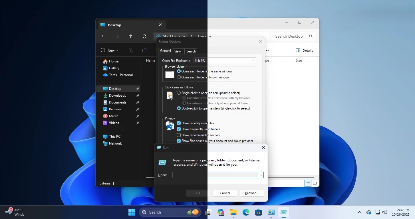 اکنون پنجرههایی مانند Run، تنظیمات Folder Options و عملیات فایل (مانند کپی و جابجایی) نسخهی تیرهی اختصاصی خود را دارند. این تغییر باعث میشود استفاده از سیستم در شب بسیار راحتتر شود و ظاهر کلی ویندوز نیز هماهنگتر و چشمنوازتر باشد.