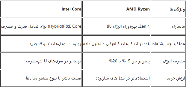 مقایسه لپ تاپ با پردازنده Intel و AMD